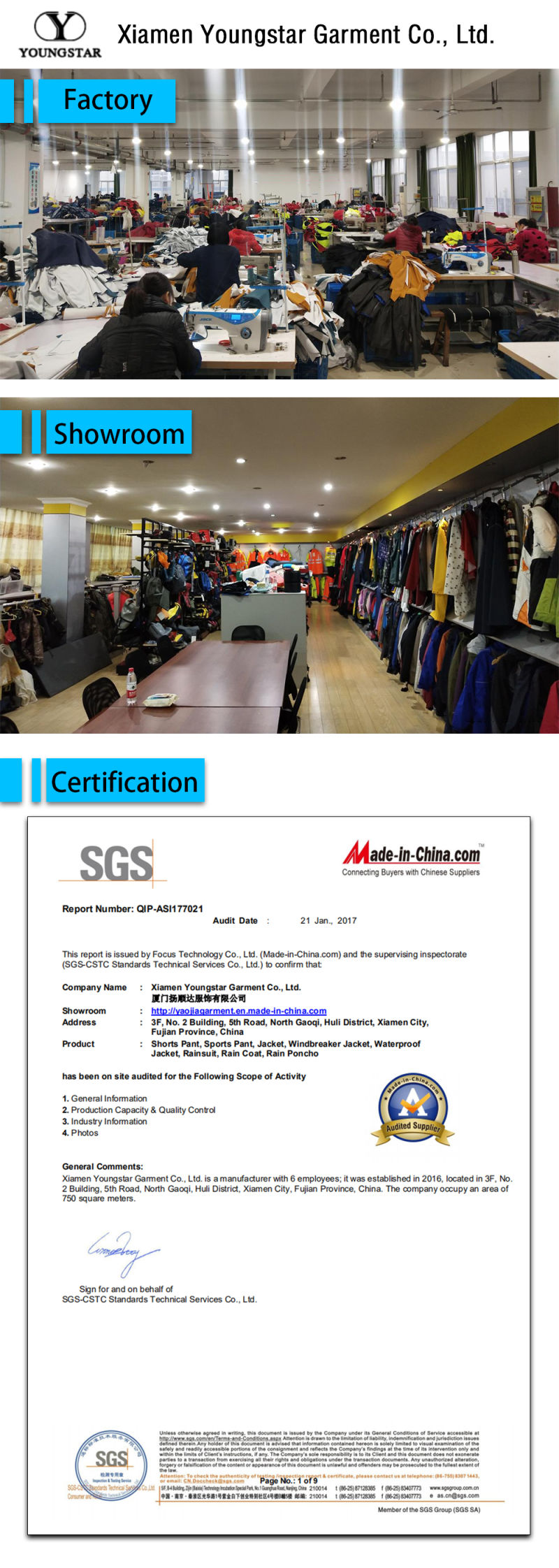 YOUNGSTAR - Un profesional fabricante y exportador de Rainwear & Prenda en Xiamen, ocupa 5, 000metros cuadrados y contiene el personal de 350 junto con 8 LíNeas de produccióN, máQuinas de coser plana 250, 200 calor welt máQuinas y otros 50 profesionales de las máQuinas.Actualmente tenemos una produccióN anual de máS de US$5 millones de dóLares.